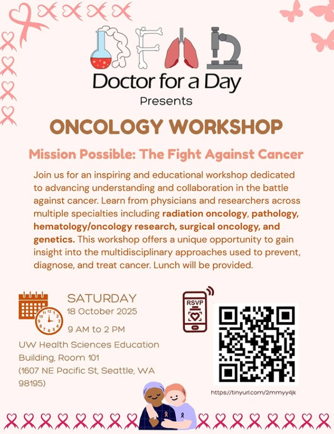 Doctor for a Day from the University of Washington, School of Medicine, is excited to host this free in-person event with hands-on activities focusing around learning about medicine and healthcare professions. Talk with current medical students, residents, and attendings to learn more about a future career in medicine. Bring all of your questions! Free swag and food provided!